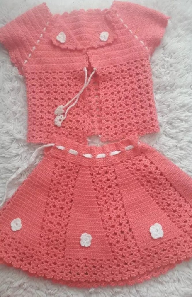 Renkli pembe örgüden yapılmış, nakışlı çiçek detaylı, bohem tarzda, kısa kollu bol kesim kız çocuk takımı. Sıfır el örgusudur