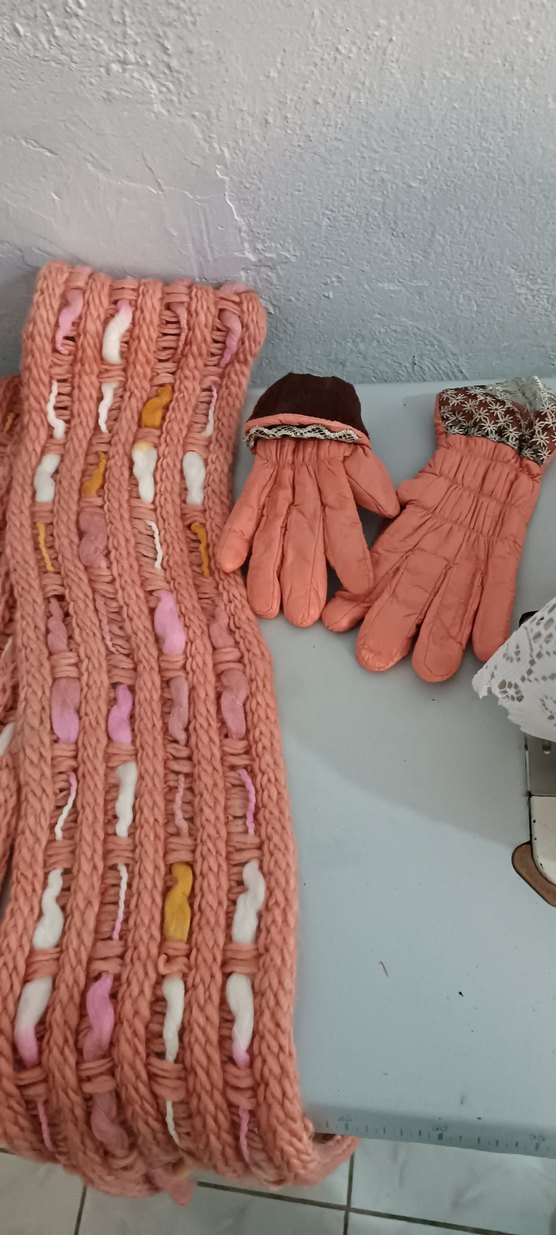 Nakışlı detaylara sahip pastel tonlarında örgü kız eldiveni, bohem tarz için uygun.