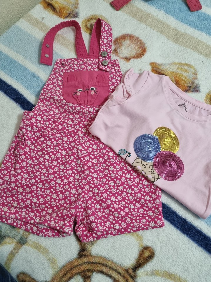 Kızlar için Nakışlı Pembe Tulum ve Kısa Kollu Tişört