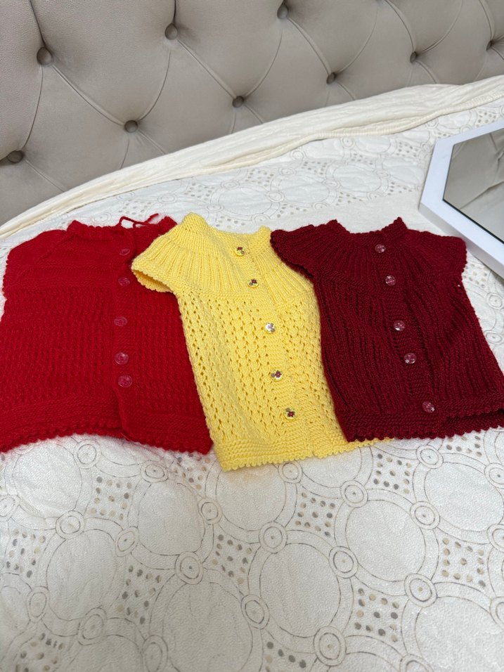 Kızlar için bohem tarzda, nakışlı renkli örgü yelek. İnce ve fitted kesim, düğmeli kapama ile rahat kullanım sağlar. 3 nün fiyatı