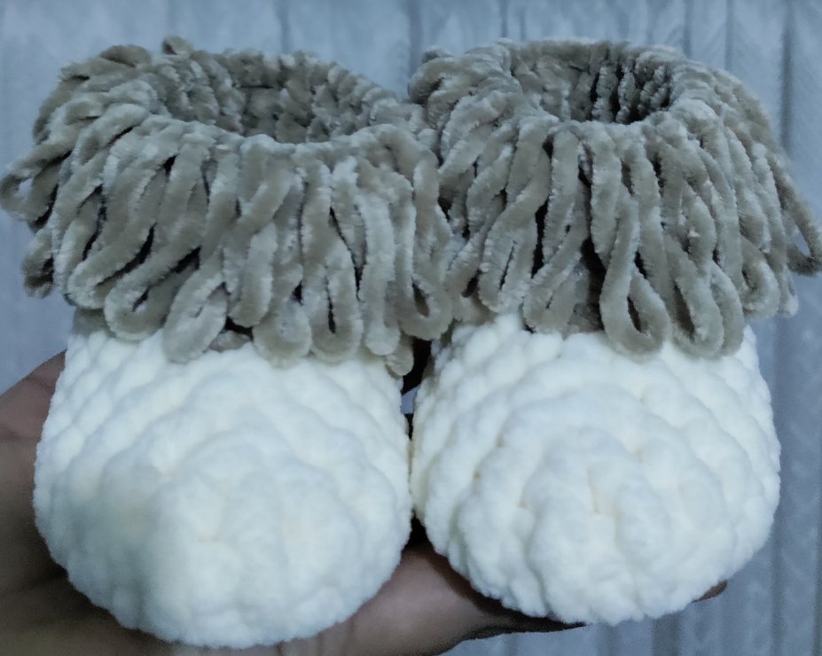 Kızlar için beyaz ve gri renklerde örme yün terlikler, sıcak tutar ve bohem tarz sunar. Desensiz, sade görünümlüdür.