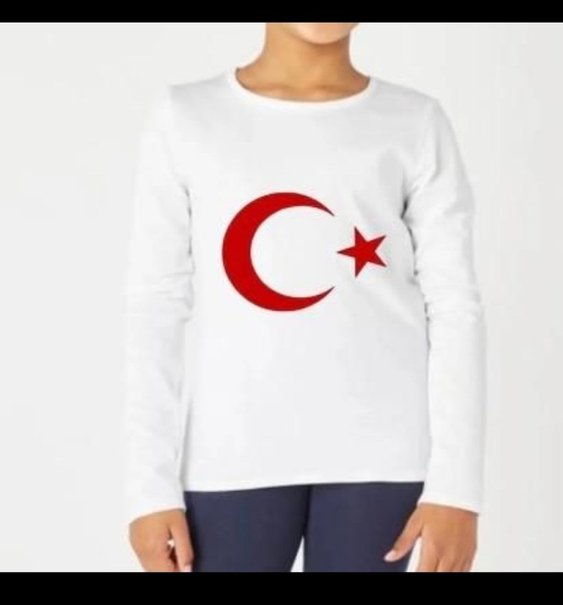 Pamuk kumaştan, kırmızı ay ve yıldız baskılı, uzun kollu, fitted kesim beyaz kız çocuk tişörtü. Rahat ve şık sokak stili sunar. 4-14 yaş arası mevcuttur
