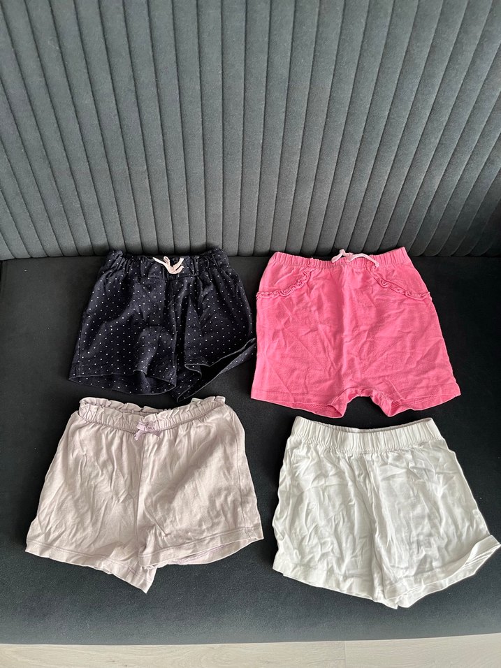 Kızlar için pamuklu, bol kesim şortlar. Açık renklerde ve sade tasarımlı, rahat ve günlük kullanım için uygundur.