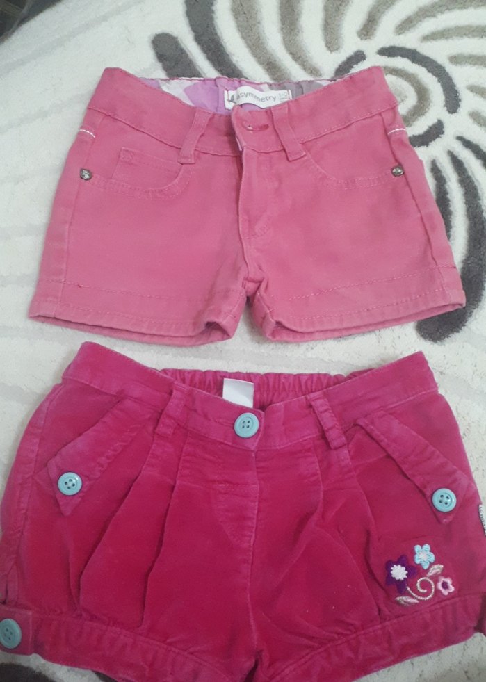 Renkli pembe pamuklu kız şortları, düğmeli ve bol kesim olup rahat sokak tarzı için uygundur. Desensiz sade tasarıma sahiptir.