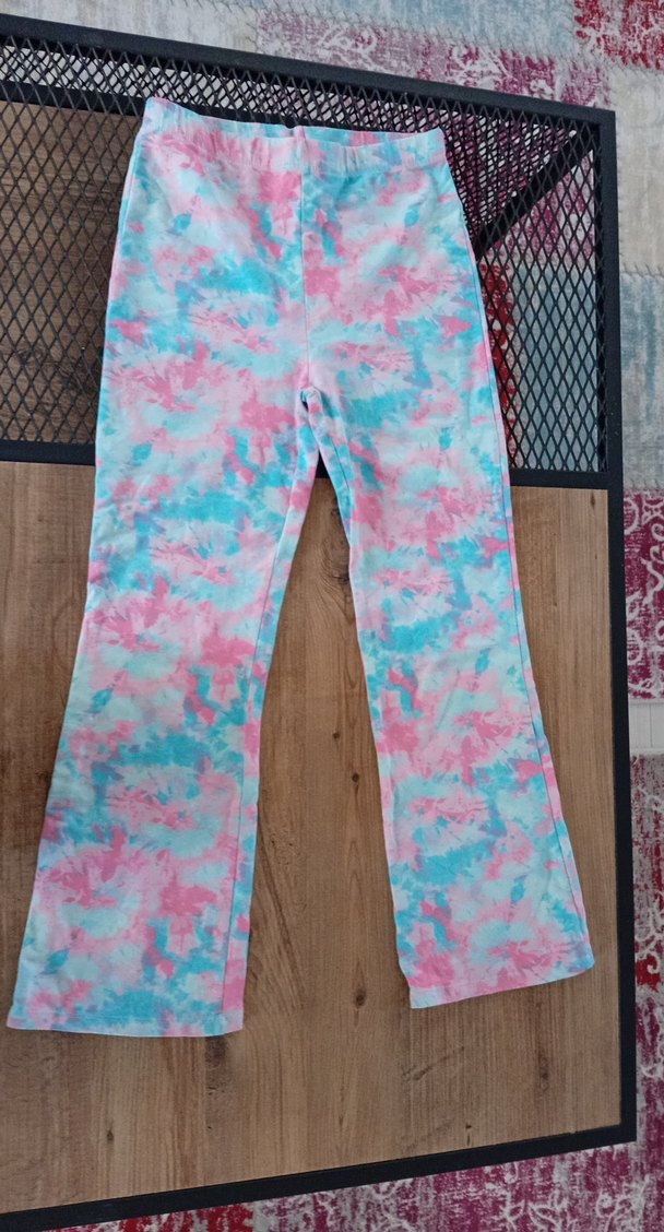 Kızlar için Pastel Renkli Bağlama Desenli Bol Paça Pantolon
