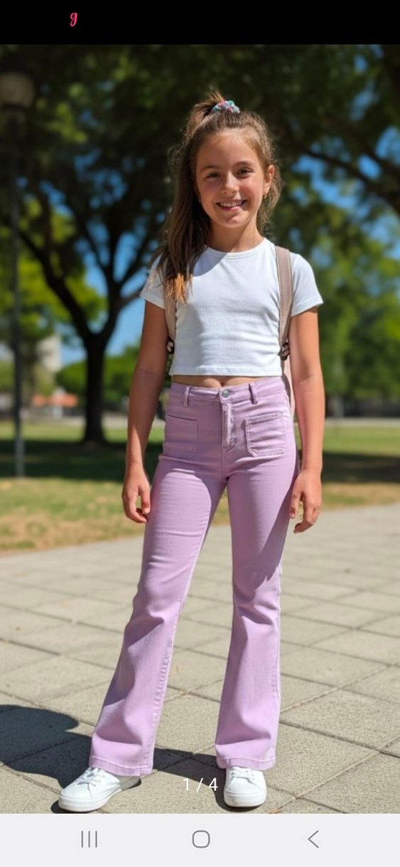 Pastel renkli batik desenli, fitted kesim denim pantolon. Rahat ve şık normcore tarzı kız çocukları için.