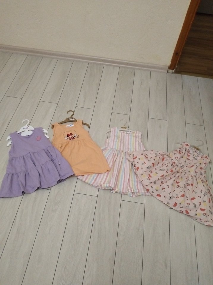 Yumuşak sentetik kumaştan yapılmış, pastel tie-dye desenli, kolsuz, bol kesim ve fırfırlı kız elbisesi. Trendy rahat stil için uygun. hepsinin fiyatıdır