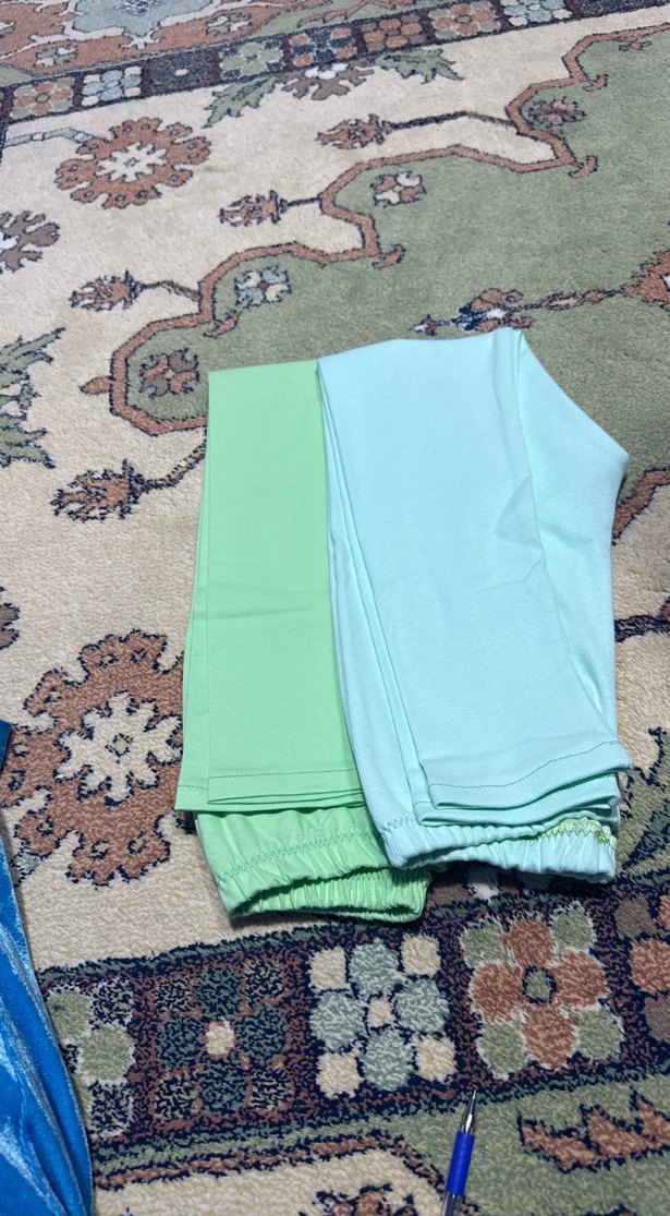 Pastel yeşil renkte, pamuklu ve bol kesim kız taytları, rahat ve sade bir stil sunar.