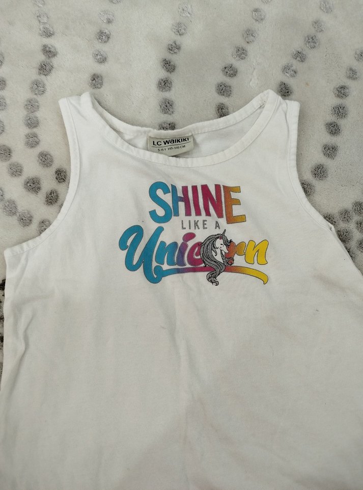 Kızlar için Payetli Beyaz Kolsuz Tişört