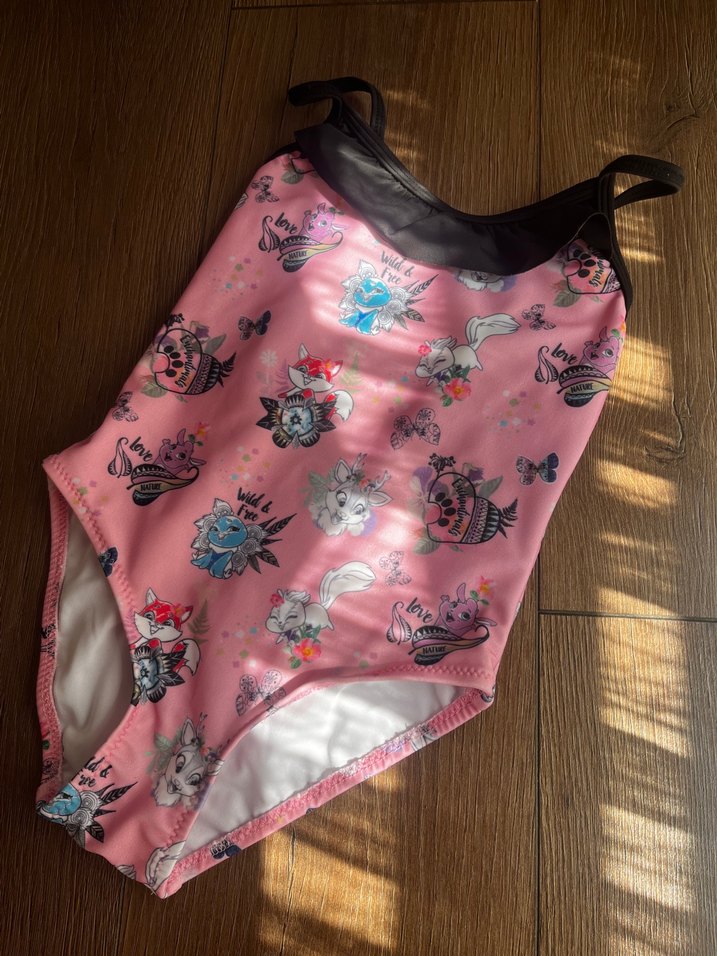 Kızlar için Pembe Baskılı Askılı Mayo