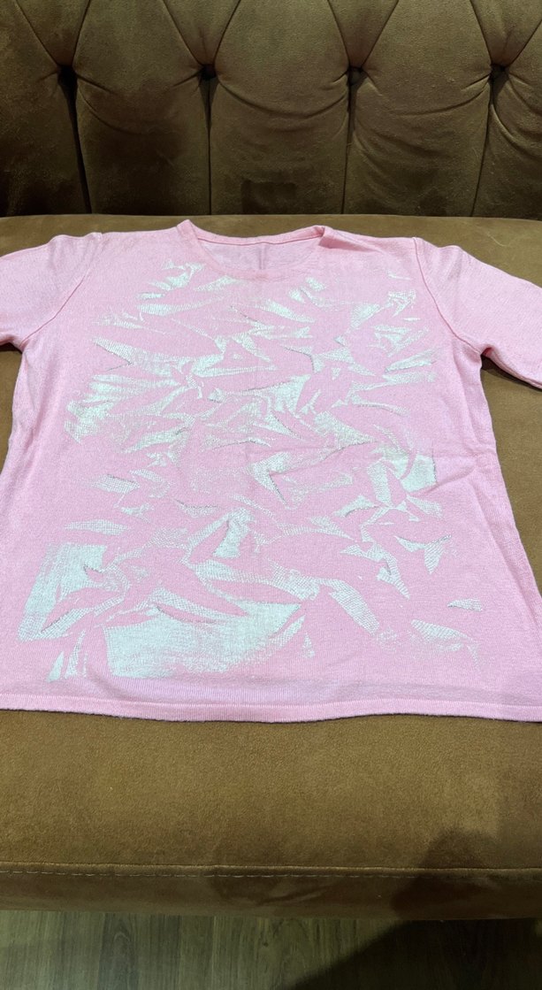 Pembe renkli, baskılı, kısa kollu ve yuvarlak yakalı kız tirikosu.Yumuşak kumaştan, rahat kesimlidir ve sokak modasına uygundur.