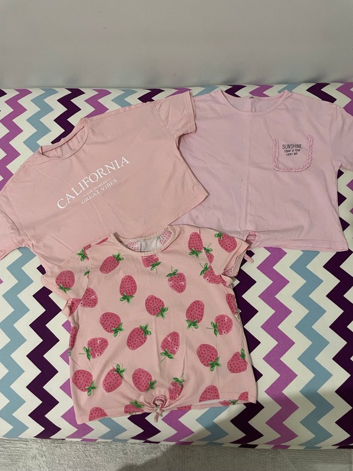 Kızlar için Pembe Baskılı Kısa Kollu Tişört