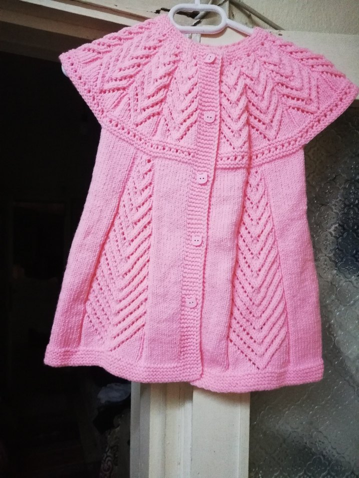 Pembe renkte, düğmeli, bohem tarzda, örgü detaylı ve kolsuz kız yeleği. el emeğidir