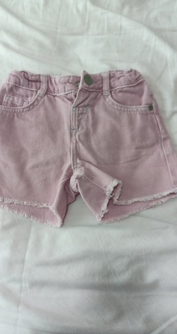 Bol kesim, düğmeli, uçları hafif yırtık pembe denim şort. Pastel tonlarda, rahat ve trend sokak tarzına uygun.