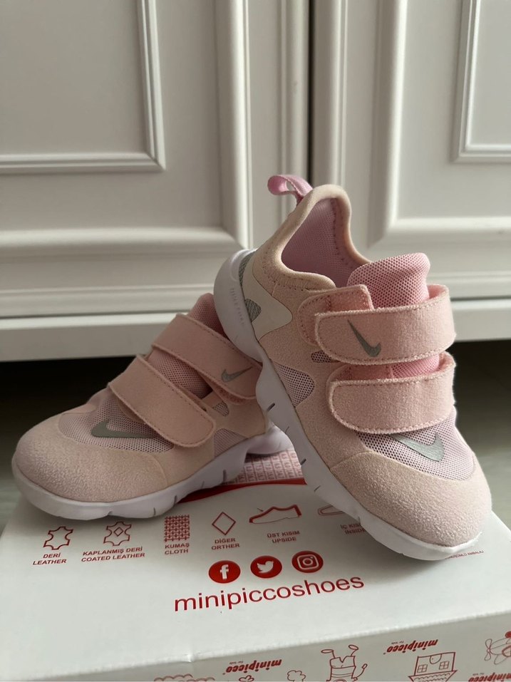 Pembe renkli, cırt cırtlı bantlara sahip kız çocuk sneakerı, göründüğü gibi yeni durumda