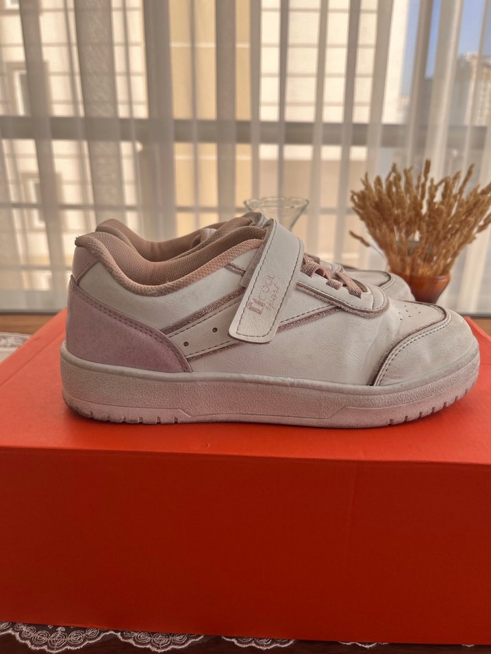 Bu kız spor ayakkabısı, kolay kullanım için cırt cırtlı bant ve pastel pembe renkte tasarlanmıştır. Kauçuk tabanlı, desen içermeyen, rahat sokak stili için uygundur. icool marka kız çocuk ayakkabı, sorunu yoktur 34 numara 21.6cm