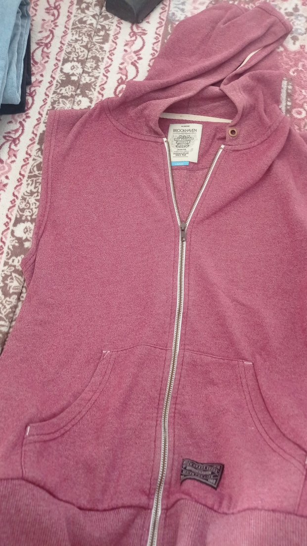 Kızlar için pastel pembe renkte, fermuarlı, kapüşonlu ve kolsuz yelek. Rahat kesimli, yuvarlak yakalı ve yumuşak, sıcak tutan kumaşlıdır.