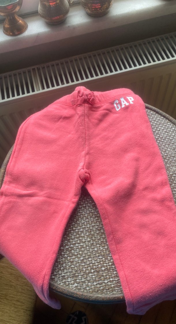 Kızlar için pembe, fitted kesim, fermuarlı bel ve GAP logosu bulunan yumuşak eşofman altı. Trend sokak stiline uygun.
