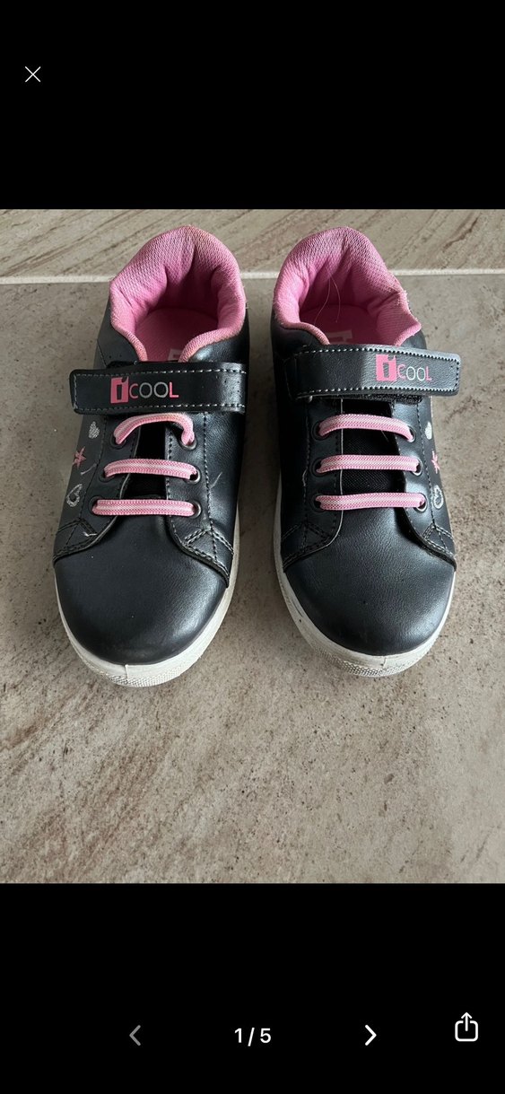 Gri ve pembe baskılı, kauçuk tabanlı ve cırt cırtlı kız çocuk spor ayakkabısı. Sokak stili için uygun.