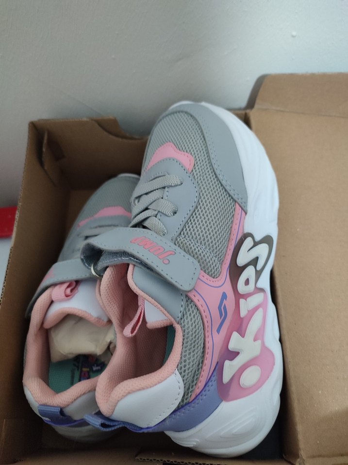 Kızlar için Pembe Gri Spor Ayakkabı Velcro