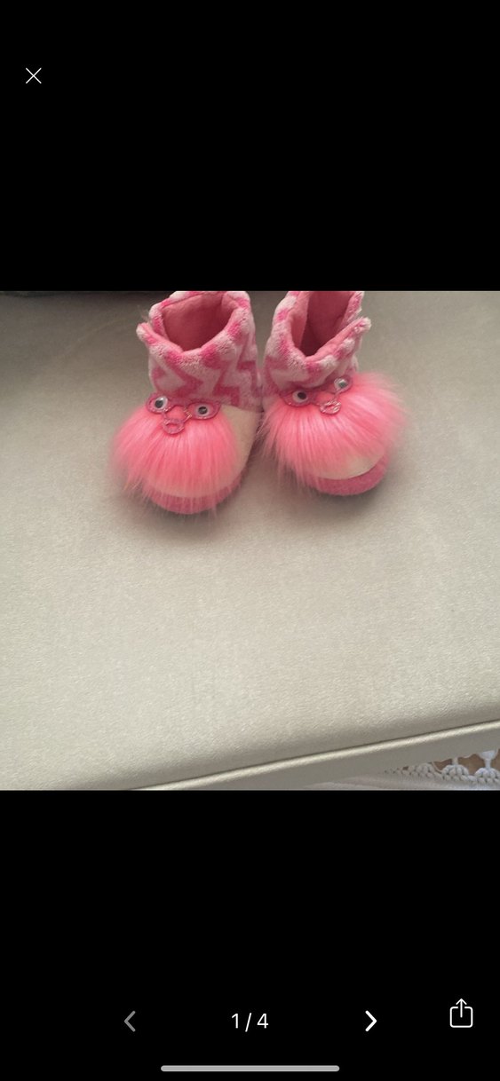 Renkli batik desenli, pembe kürklü kızlar için sıcak terlikler. Yumuşak ve rahat, rock punk tarzını yansıtıyor.