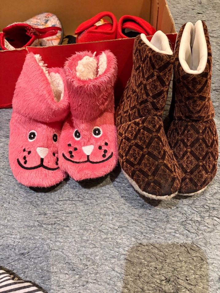 Kızlar için renkli pembe terlikler, yumuşak ve sıcak kumaş, kürk detaylı ve nakışlı hayvan yüzleriyle rahatlık sunar.