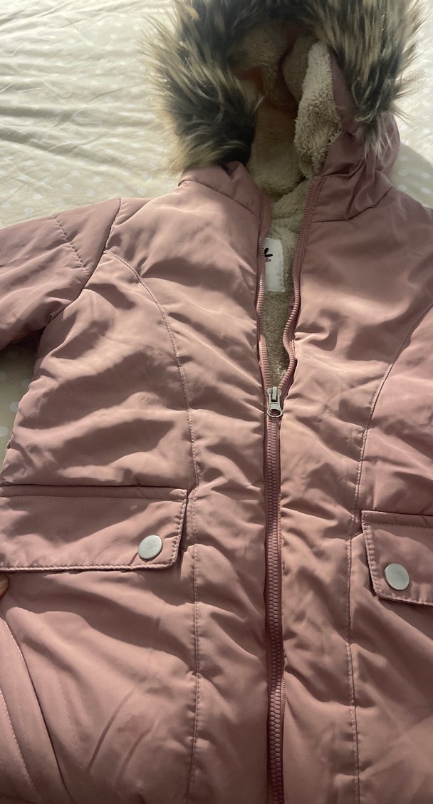 Kızlar için fitted kesim, pembe renkli, yakasında kürk detaylı mont. Yumuşak ve sıcak kumaştan, cepli ve fermuarlı, pastel tonlarda sokak stili. ❄️