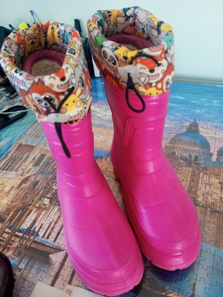 Kızlar için Pembe Lastik Çizme Velcro Bağlı
