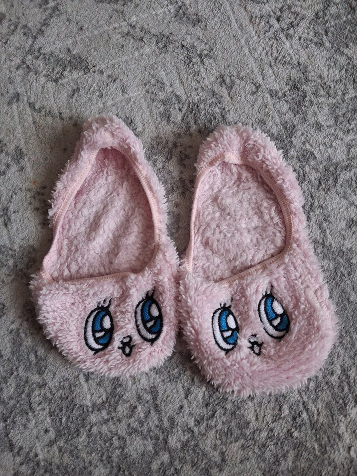 Yumuşak kumaş ve nakışlı sevimli yüz detayları ile pembe kızlar için sıcak terlik, kürk detaylı. Rahat sokak stili için uygun.