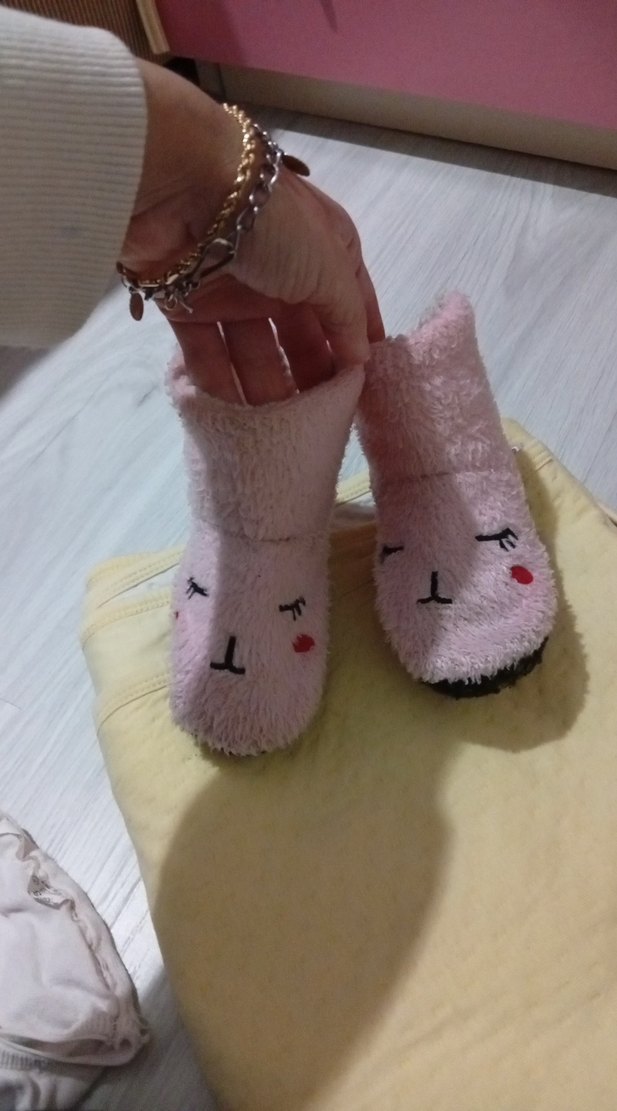 resimdeki görüldüğü gibidir .. hepsşnşn tıplqm fiywtı yazılıdır . bedenş temsili yazılıdır . kilot bez tuvalet öğrenmek için , sadece naylonları yok .. .kızlar için yumuşak tüylü kumaştan, pembe renkli ve nakışlı sevimli yüz detaylı örgü ev terlikleri.