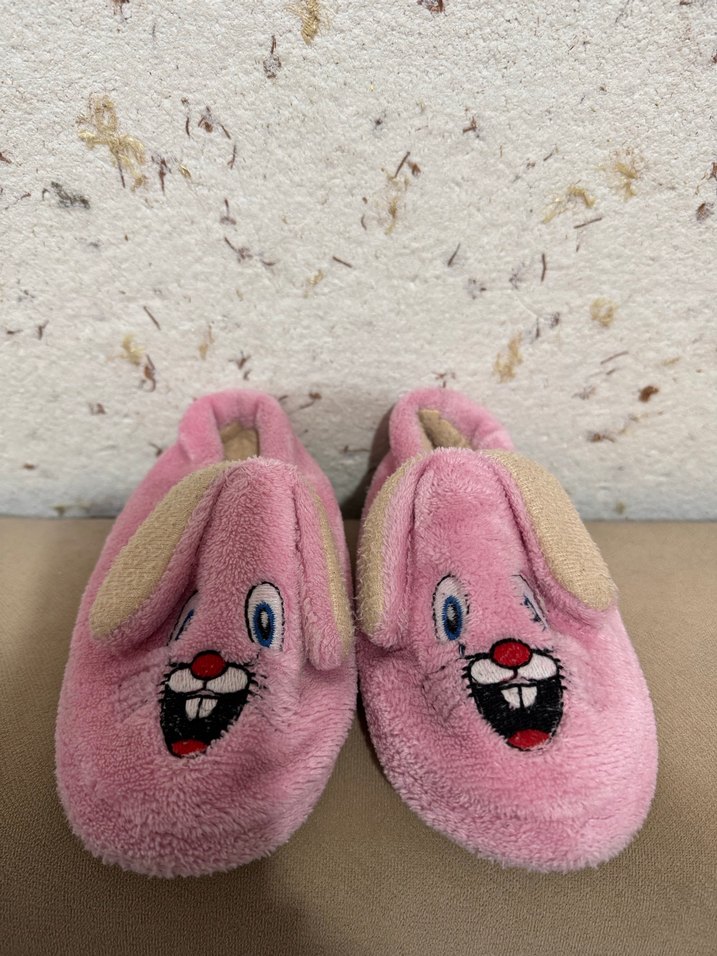 Pembe nakışlı tavşan yüzü detaylı, yumuşak tüylü kızlar için polar ev terliği, bohem tarzı için uygun. 28 29 numara için uygundur .