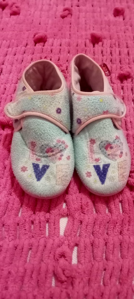 Kızlar için yumuşak kürk görünümlü, pastel pembe nakışlı ve cırt cırtlı sıcak terlikler. Bohem tarzı rahatlık sunar.