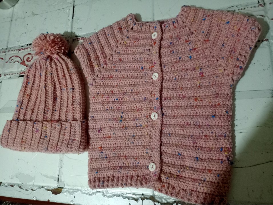 Pembe örgüden yapılmış, uzun kollu ve bol kesimli pastel tonlarda kız çocuk hırkası. Önü beyaz düğmeli sade tasarım. 1 1.5 yasa uygun