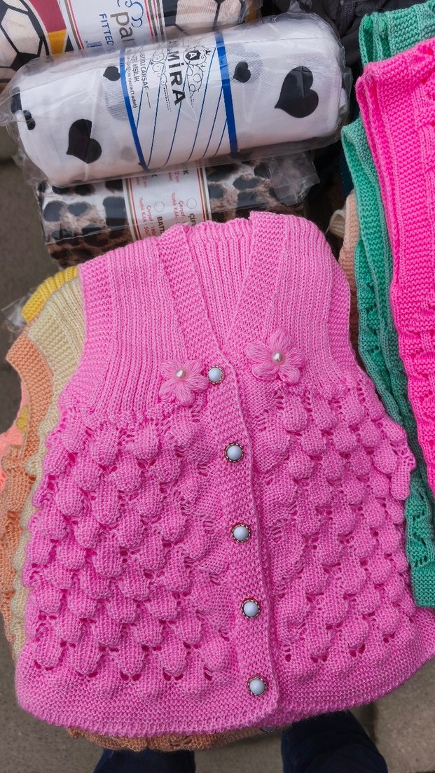 Kızlar için Pembe Örgü Kolsuz Hırka