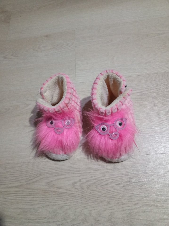 Kızlar için pembe, yumuşak kürklü ve renkli nakış detaylı sıcak ev terliği, bohem tarzına uygun.