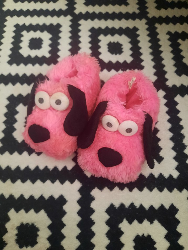 26 27 28 numaralı ayaklara uyumludur hepsinin fiyatıdır temiz ve güzel kullanmışlar herhangi bir yırtı söküğü yoktur Kızlar için pembe peluş kumaştan, sevimli köpek figürlü, renkli ve yumuşak ev terlikleri.