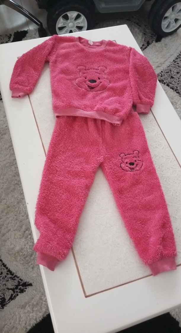 Pembe peluş kumaştan, nakışlı kürk detaylı, bol kesim kız çocuk eşofman takımı. Uzun kollu ve bisiklet yaka, renkli ve trend sokak tarzı.