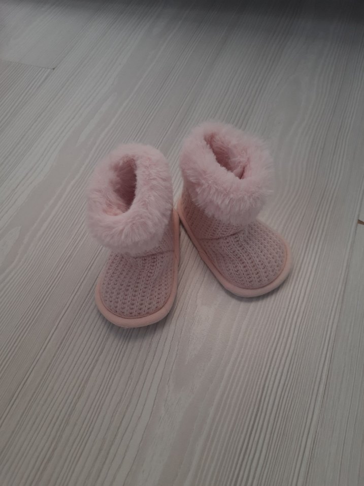 Kızlar için pembe, örgü sıcak terlikler, yumuşak tüylü manşet ve sade, düz tasarıma sahip pastel tonlarda.