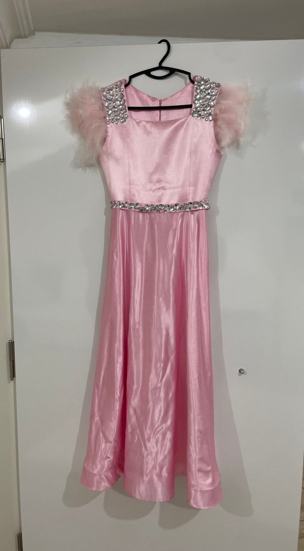 Kızlar için Pembe Saten Fırfırlı Elbise