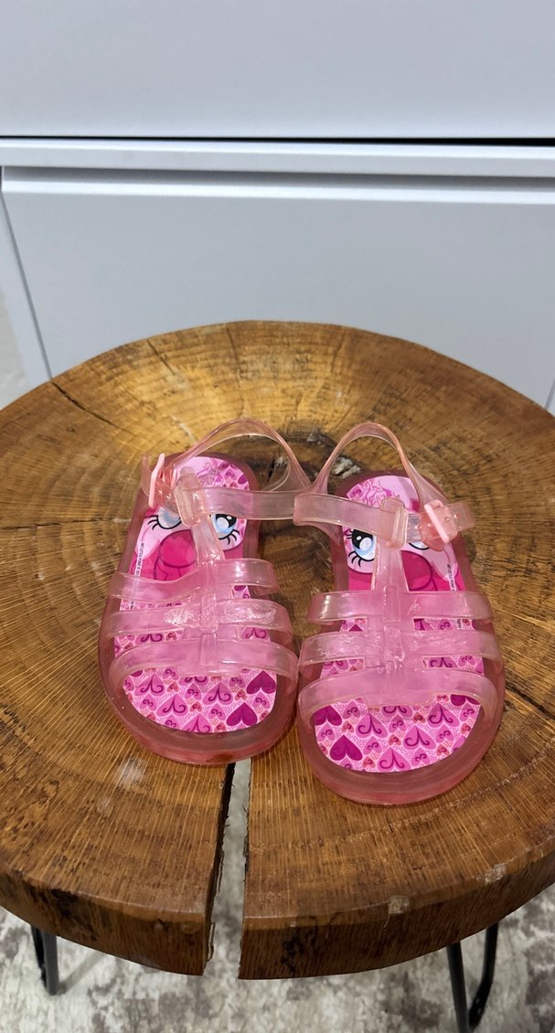 Kızlar için Pembe Şeffaf Tokalı Sandalet