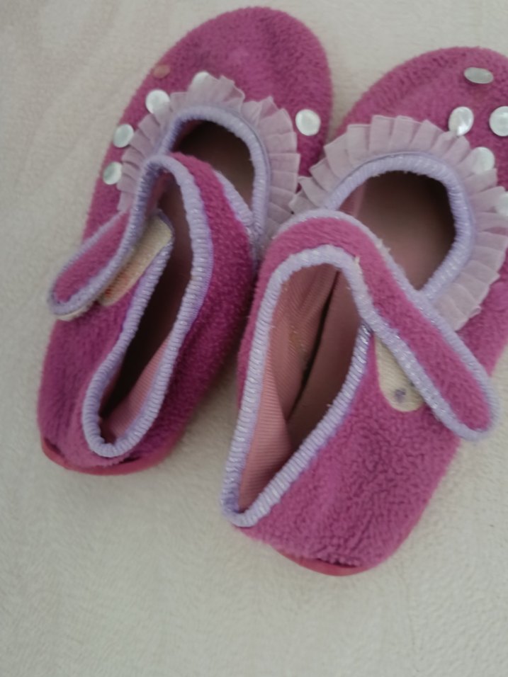 Yumuşak kumaşlı, fırfırlı ve nakışlı pembe kız çocuk ev terliği. İç mekan için rahat ve sıcak.