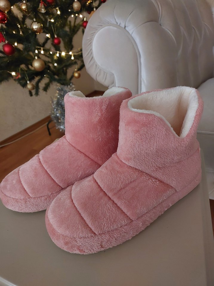 Yumuşak kürklü kumaştan yapılmış, pembe renkli kız çocukları için sıcak ev terliği. Kürk detaylarıyla ekstra konfor sağlar, desensiz ve normcore tarzda. ❄️