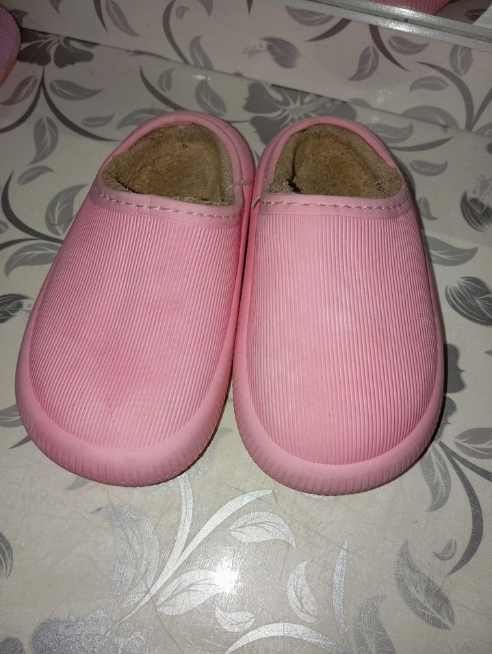 Kızlar için pastel pembe renkte, pileli tasarıma sahip sıcak terlikler. Yumuşak iç astarlı ve kauçuk tabanlıdır. İç mekan kullanımı için uygundur.