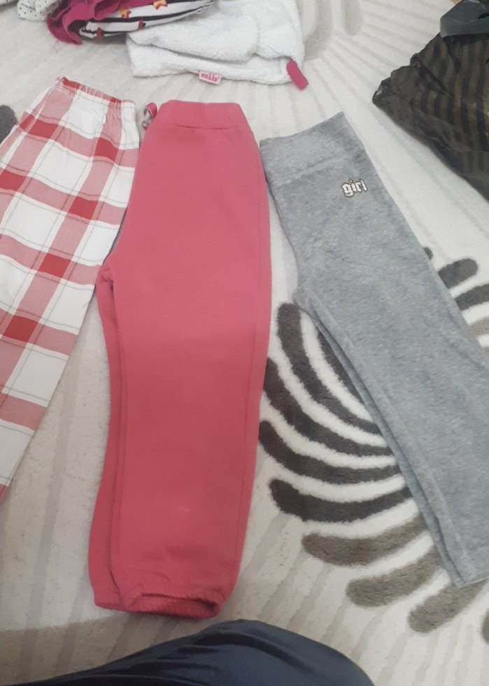 Pembe ve gri renklerde, bol kesim kız eşofmanları. Yumuşak, sıcak kumaştan, rahatlık için elastik bel bantlı. Gri modelde küçük 'girl' yazısı bulunur.