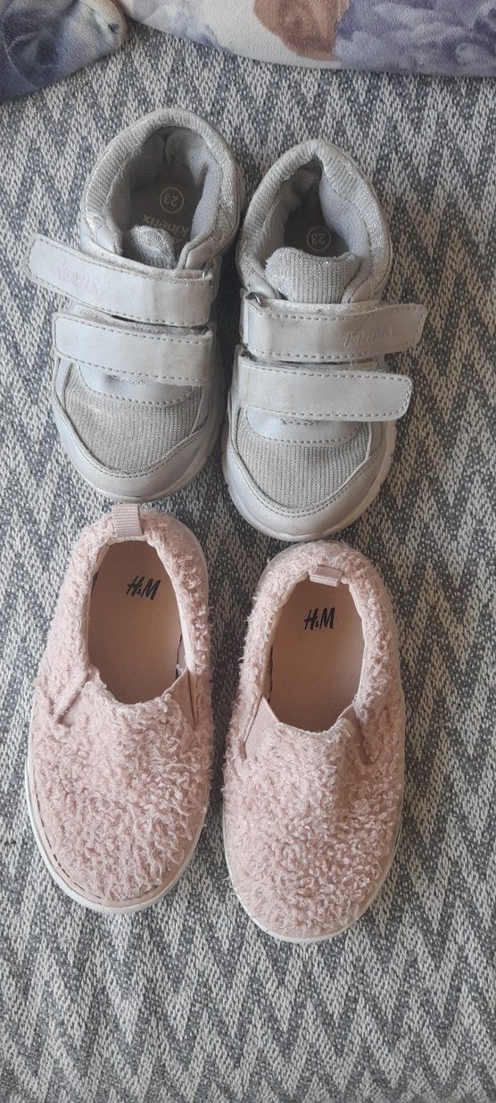 Kızlar için pembe ve gri renklerde, cırt cırtlı spor ayakkabılar. Düz ve desen içermeyen, günlük kullanıma uygun. Marka: H&M.