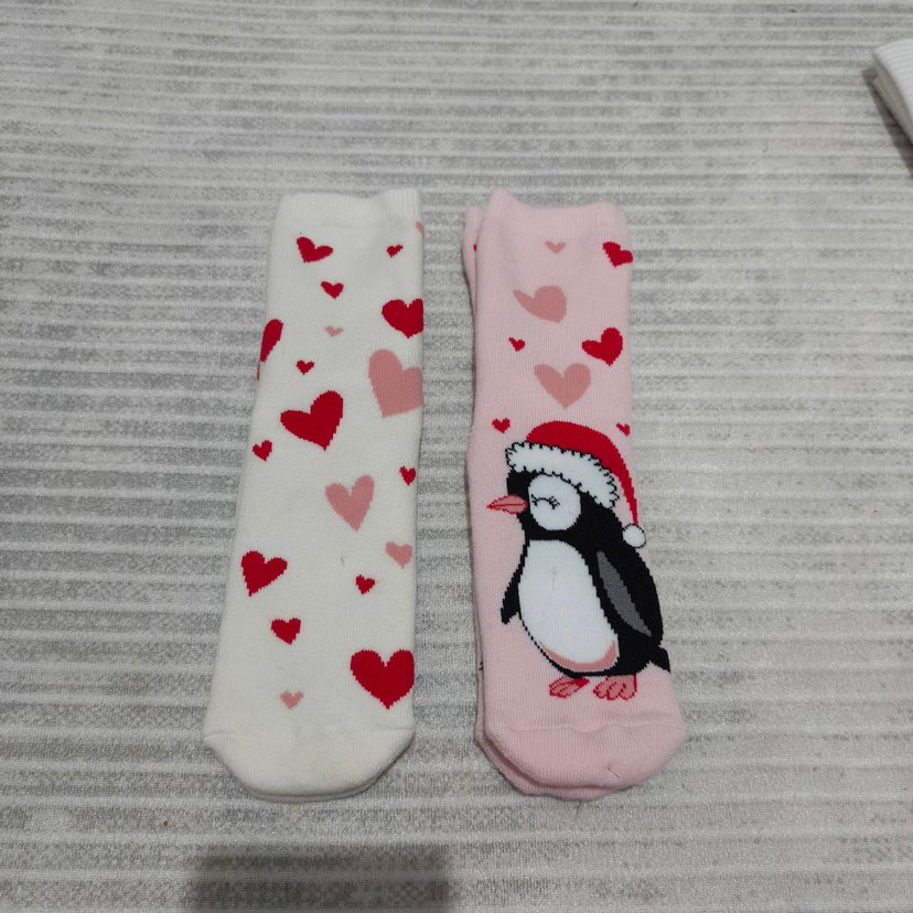 Kızlar için penguen ve kalp desenli renkli çoraplar, Numaralar 27-30 numaralar arasındadır yumuşak ve sıcak kumaştan üretilmiştir.