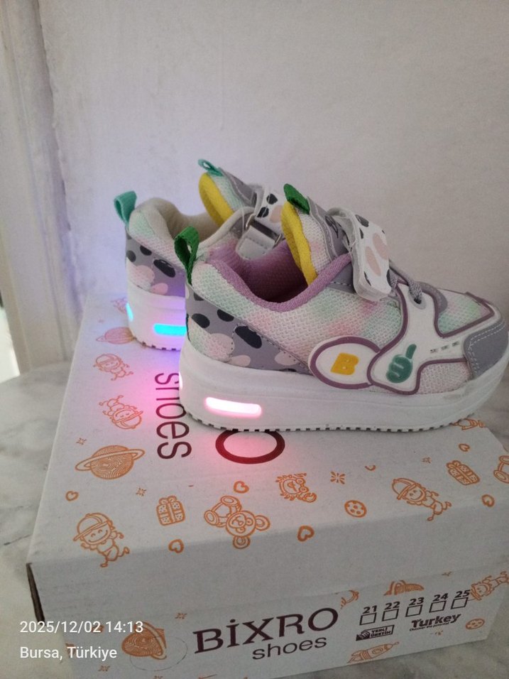 1 kere giyebildi. ayağına ufak geldi. tertemiz ışıklı ayakkabı