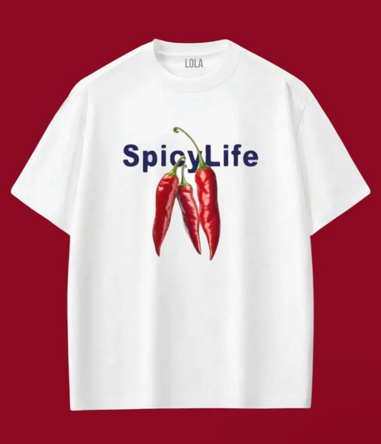 Pamuklu, kısa kollu, salaş kesim kız tişörtü. Renkli biber baskısı ve "SpicyLife" yazısı ile. Yanlarda yırtmaç detayı bulunur.