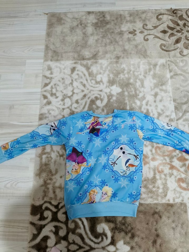 Kızlar için uzun kollu, bisiklet yakalı ve yumuşak fleece kumaştan yapılmış renkli baskılı mavi sweatshirt. Örgü detaylı, trend sokak stili için uygun. ❄️