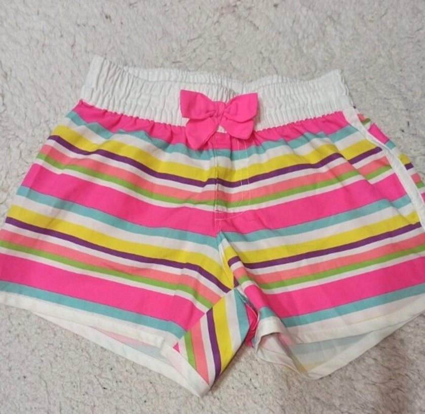 Renkli çizgili, fiyonk detaylı ve lastikli bel bandına sahip kızlar için dar kesim şort. Kaygan sentetik kumaştan üretilmiştir. 3-4 YAŞTIR DENİZ ŞORTU OLARAK GİYİLEBİLİR 98-104 cm çocuklar için uygun